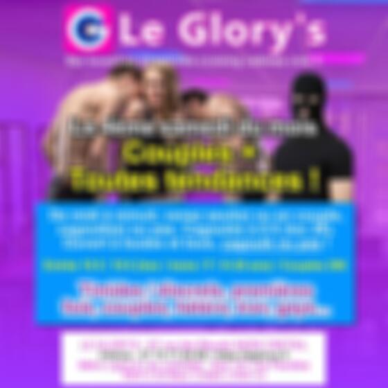 Le 4ème samedi du mois, venez en couple, seul(e), ou avec des ami(e)s ! Le Glory's sera ouvert à toutes et tous. Les discrets pourront mettre une cagoule, les travesties pourront se travestir, les couples pourront découvrir l'établissement, et les novices se faire initier. Si tu n'es jamais venu, c'est le moment !! A découvrir : les 6 cabines glory-holes, dont 4 dans le labyrinthe, les 3 cabines avec matelas, la petite chambre privative avec draps et taies propres... NE MANQUEZ PAS CETTE JOURNEE !! Inscription souhaitée mais pas du tout obligatoire... GANG BANGS souhaités mais pas obligatoires ! Mdr...