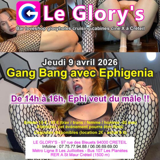 Gangbang avec Larissa au « Glory’s » samedi 11 avril 2026 à partir de 20h.